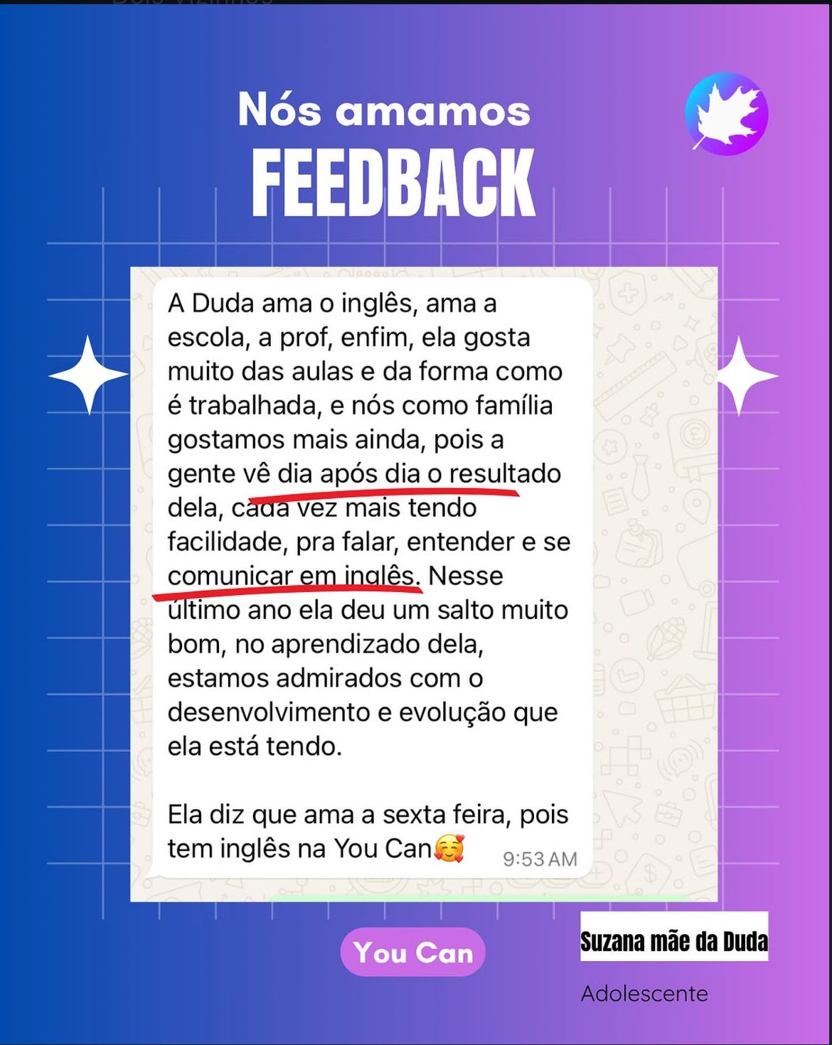Já pensou se a escola de inglês do seu filho fosse o lugar que você sonhou ter encontrado na infância? Onde aprender fosse leve, divertido e cheio de conquistas! 💜
